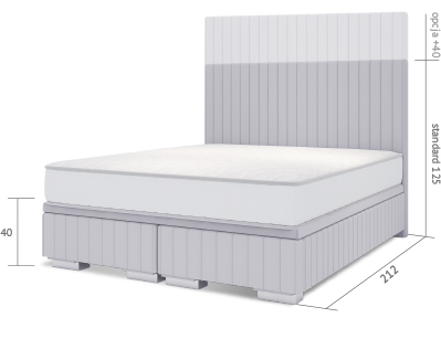 Specyfikacja techniczna łóżka Flavio z ramą kontynentalną wraz z wymiarami przedstawia się następująco: