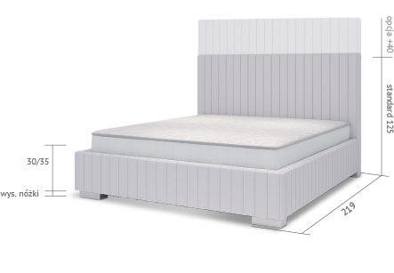 Oryginalne i pasujące do każdej sypialni łóżko Flavio, to model o niebagatelnym wyglądzie. Zarówno na wezgłowiu jak i na ramie łóżka pionowe pasy dają to coś co powoduję iż ten model łóżka cieszy się ogromnym zainteresowaniem. Ogromny wybór tkanin i kolorów daję nam wiele możliwości i pozwoli cieszyć oko codziennie idąc spać po ciężkim dniu pracy.