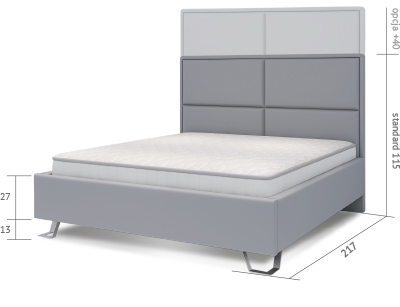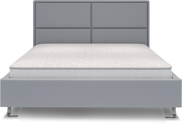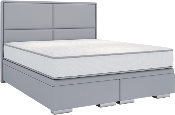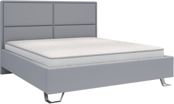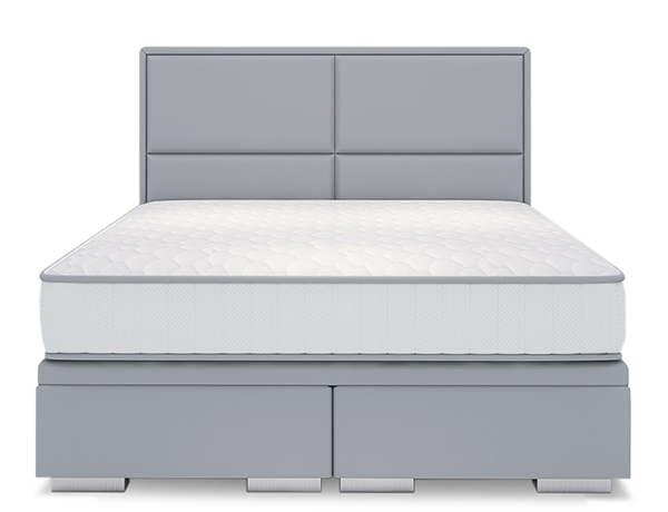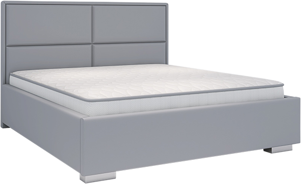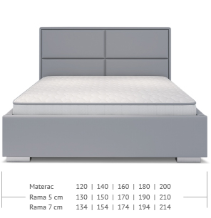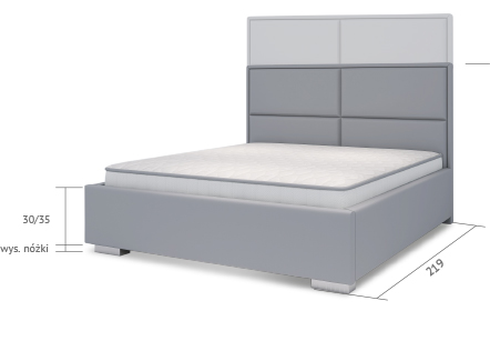 Łóżko Leone charakteryzuje się zagłówkiem wzmocnionym naokoło solidną ramką oraz czterema prostokątami które dodają wizualnie coś więcej niż tradycyjne łóżka na rynku.