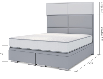 Specyfikacja techniczna łóżka Leone z ramą kontynentalną wraz z wymiarami przedstawia się następująco:
