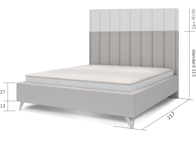Specyfikacja techniczna łóżka Oliviero z ramą kontynentalną wraz z wymiarami przedstawia się następująco: