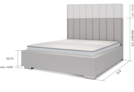 Specyfikacja techniczna łóżka Oliviero z ramą light wraz z wymiarami przedstawia się następująco: