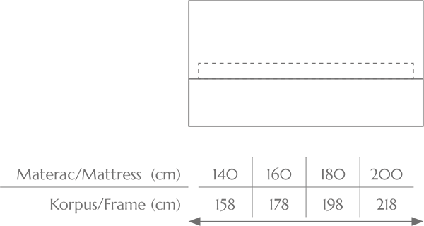 Ergonomiczne wezgłowie, zdobione bogato marszczonym materiałem tworzy wyrafinowany wygląd. Komfortu użytkowania dodają duże, wygodne poduchy wykreowane w myśl wezgłowia.