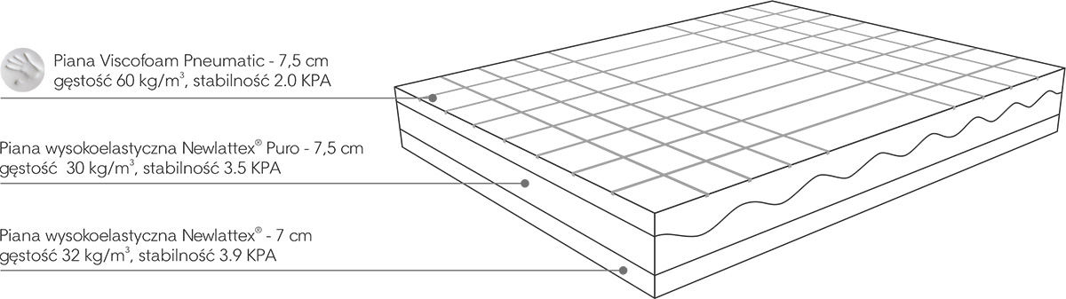 - Warstwa spodnia to 7 cm piany wysokoelastycznej Newlattex.