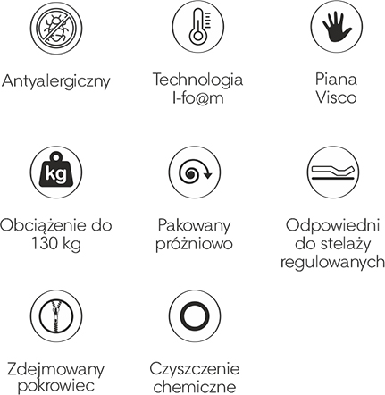 - Piankę najnowszej technologii I-fo@m regulującą temperaturę ciała podczas snu.
