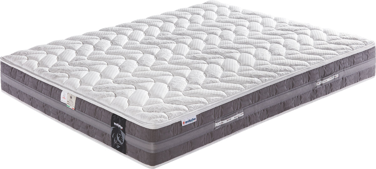 Model Fabiola włoskiej firmy Mollyflex , z kolekcji Platinum, to wygodny materac piankowy o stopniu twardości mieszczącej się pomiędzy miękkim, a średnio twardym. Jak wszystkie nasze materace jest produktem antyalergicznym – w tym modelu dba o to nowoczesna i bardzo wytrzymała tkanina Impressive, która dodatkowo odprowadza wilgoć. Pianka Polygel na wierzchu materaca delikatnie otula ciało, a wewnętrzna piana i-fo@m absorbuje ciepło zapewniając komfort termiczny przez całą noc. Materac ten można uzupełnić o pasujący do tego modelu wymienny topper (sprzedawany oddzielnie), który w zależności od użytego materiału może podnieść komfort snu (Visco Elastic Piramidal Shape) lub nadać materacowi dodatkowej sprężystości zwiększając przy tym jego przewiewność (Polisoff).