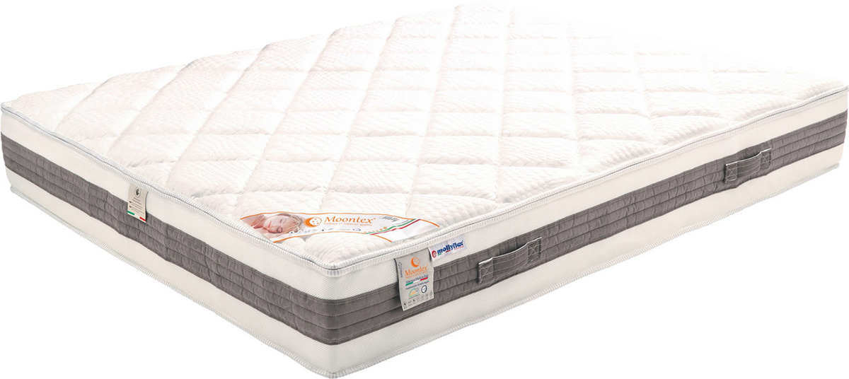 Materac piankowy Splendid Comfort włoskiej firmy Mollyflex, z kolekcji Silver, jest modelem specjalnie opracowanym przez producenta Mollyflex dla tych którzy szczególnie dużą uwagę skupiają na wygodzie i komforcie spania. Idealnie dobrana twardość dzięki połączeniu wysokiej jakości pianek pozwoli na idealne podparcie kręgosłupa, dlatego ten materac posiada również atesty medyczne. Piękny design oraz odpowiednia wysokość pozwala na zastosowanie tego modelu w łóżkach z tradycyjną ramą oraz ramą kontynentalną. Zdejmowany pokrowiec z powłoką silver Safe gwarantuje odpowiednią higienę oraz cyrkulację powietrza. Włókno węglowe oraz carbon dodatkowo likwidują ładunki elektrostatyczne zgromadzone na naszym ciele. Tkanina dzięki swojej najnowszej technologii znacznie ogranicza gromadzenie się kurzu oraz nie elektryzuje się. Pianka I-fo@m która znajduje się w pokrowcu dodatkowo reguluje temperaturę ciała dzięki mikrokapsułkom PCM.