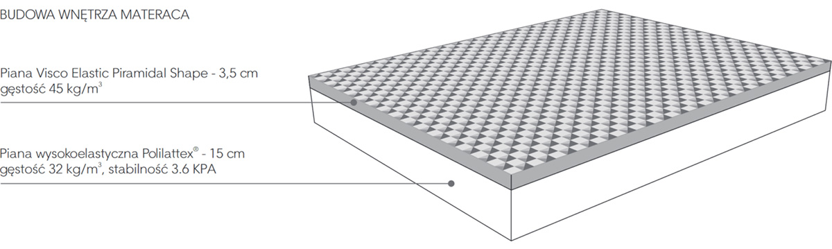 - Wierzchnia warstwa to 3,5 cm piany Visco Elastic Piramidal Shape.