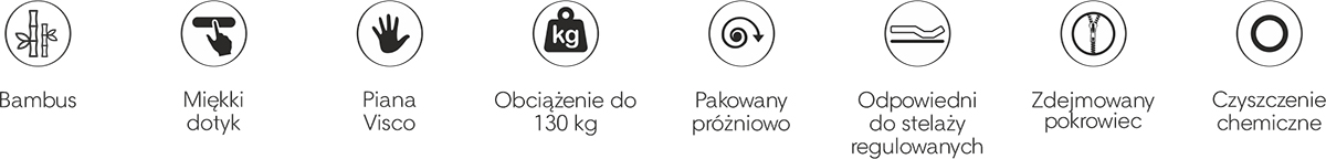 Pokrowiec zawiera pianę Visco dopasowującą się do kształtu ciała. Sprzyja to regeneracji całego organizmu podczas snu.